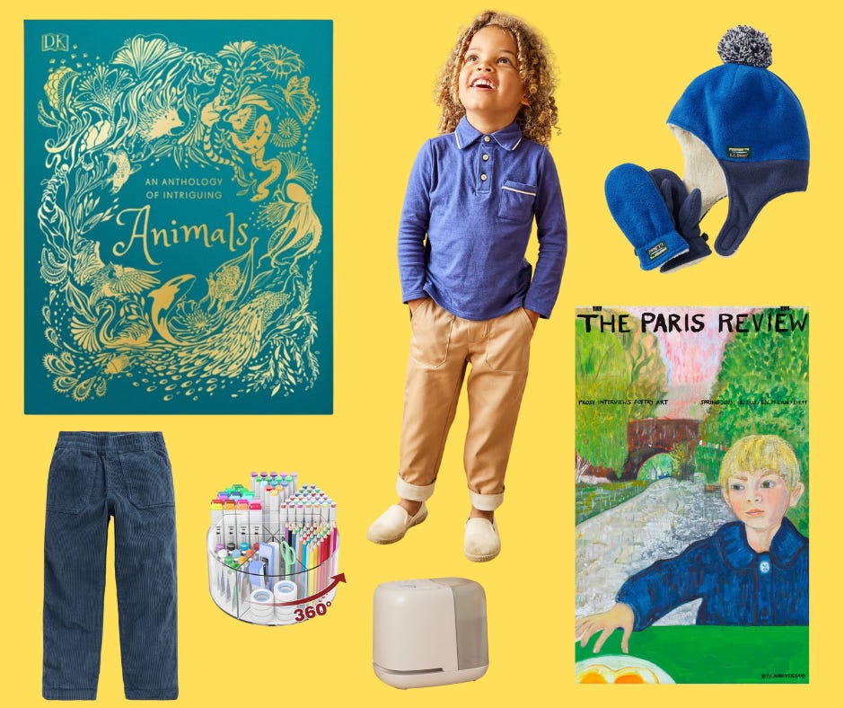 Speaking of my little guys, I bought them two brand-new blazers from a secondhand booth at a local school fair, Canopy humidifiers, and a poster from The Paris Review (that looks like my younger son, but is still unframed.) I got acrylic lazy Susan for their markers and more Oso and Me polos and rugbies. My mother-in-law bought them a book that has unleashed a hold over them hard to put into words: DK Anthologies: An Anthology of Intriguing Animals.