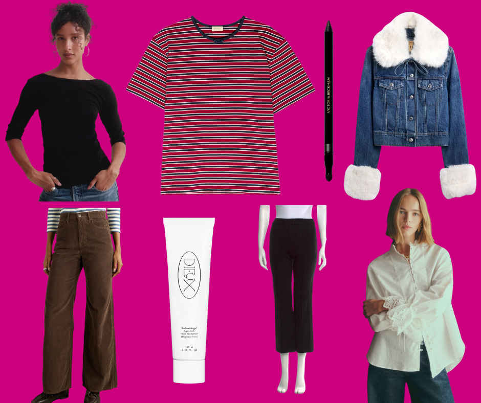 I bought Victoria Beckham eyeliner (recommend!), a Donni T-shirt with a sweet bow, and Dieux Instant-Angel moisturizer. I bought baby gifts for friends, a pumpkin carving kit, and a blouse from Sézane. I bought High Sport pants from The Real Real, a Cleo Camp top in black—per Liana Satenstein, of course—and new corduroys for me (Veronica Beard) and the boys (Boden.)